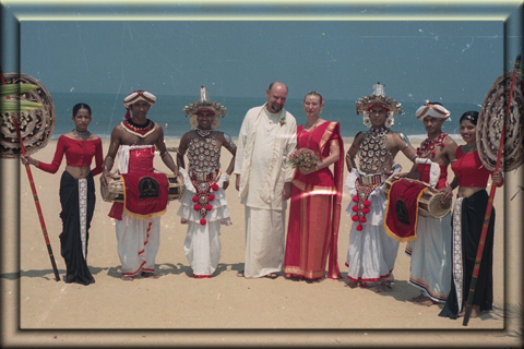 Als Ort unserer Hochzeit verbindet uns mit dem 40 km nördlich gelegenem Negombo natürlich sehr vieles. Die Nähe zur Hauptstadt führte dazu, daß sich der Ort schon in den 70er Jahren zu einem der bedeutendsten Touristenzentren des Landes entwickelte. Strand und Wasser sind allerdings ziemlich verschmutzt, der Sand recht grobkörnig, nicht unbedingt das Richtige für Strand- und Badefreaks. Allerdings bieten sich in bunten Korallenriffs vor der Küste ausgezeichnete Tauchmöglichkeiten. Und Negombo besitzt andere interessante Dinge, wie zahlreiche religiöse Bauwerke aller Konfessionen, den größten Fischereihafen des Landes, einen sehenswerten Fischmarkt und herrliche Dschungellandschaften in der Umgebung. Wer dem touristischen Trubel entkommen möchte, findet in der Innenstadt ein typisches Alltagsleben mit Geschäften, Märkten und kleinen Restaurants. Als Anbaugebiet des "besten Zimts der Welt" zog Negombo schon vor mehr als 1 000 Jahren die Mauren an. Der Zimtkanal, ein attraktives Ziel für Bootsexkursionen, stammt noch aus dieser Zeit. Später folgten Portugiesen, Holländer und Briten. Unsere landestypische Hochzeit im Hotel "Royal Oceanic" wurde zu einem ganz besonderen Erlebnis und wir haben diese nicht alltägliche und zudem noch recht preisgünstige Form, trotz einiger bürokratischer Hürden, keinesfalls bereut.